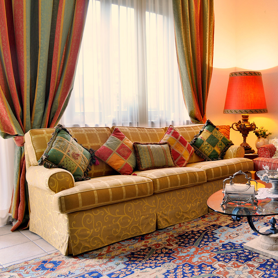 Curtains make up a huge part of your decor, don't underestimate how much effect your curtains will have on your space both when opened and drawn. It's advisable to chose the pattern and colour of your curtain fabric in the early stages of your redecoration, this way you can be sure that everything matches up.