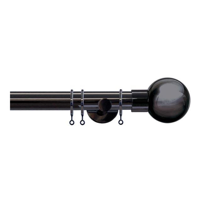 Strand 35mm Black Nickle Pole Set With Metal Ball Finials & Ceiling Brackets